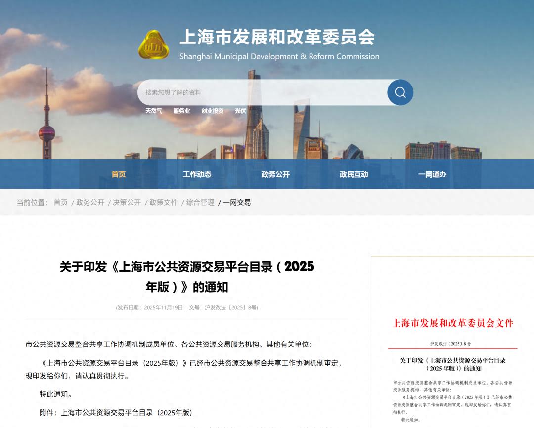 近日,上海市發展和改革委員會代市公共資源交易整合共享工作協調機制辦公室發布滬發改法〔2025〕8 號通知,正式印發經該協調機制審定的《上海市公共資源交易平臺目錄(2025 年版)》,要求市公共資源交易整合共享工作協調機制成員單位、各公共資源交易服務機構及其他有關單位認真貫徹執行。